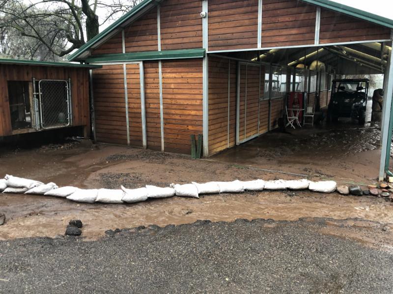 Photo, right: The barn - which includes our gift shop and surgery room - has flooded and the downstairs office and volunteer area have take on water too.