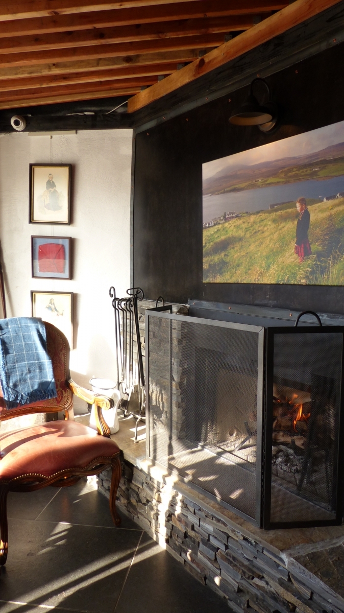 The ambience is as warm and cozy as any highland Scottish pub, with dark wood booths, a central long table with tartan-clad stools for gathering and making new friends, a sword gifted by La Mesa’s mayor, old family photos on the walls, and a front fireplace topped by a portrait of Fourpenny Scotland north of Inverness, the crossroads that inspired the name.