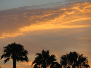 October 30, 2011 (Boulevard) -- At 6:20 am I walked into the sun. Tormented by drama in my mind, it took a while to sink in. It was a cool morning, about 64 degrees. I was walking up a sweat. And then I saw. I saw the beginnings of color of the sunrise. The clouds were gently dancing across the sky that was bluing before my eyes. The underside of the clouds became tinged with yellow with the shining of the sun.
