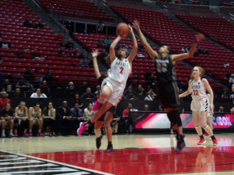 March 11, 2019 (Las Vegas) - Sophomore guard Najé Murray tallied 22 points with six three-pointers and freshman guard Mallory Adams recorded a career-high 16 rebounds in San Diego State’s 70-61 overtime win over second-seeded New Mexico in Monday’s Mountain West quarterfinal. The Aztecs came back from a 13-point deficit and tied the score with a Sophia Ramos’ runner at the end of regulation to push the game into extra minutes.