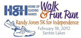 February 9, 2012 (Santee) – The Randy Jones “5K For Independence” walk and fun run will be held on February 18 at Santee Lakes.  The event benefits Home of the Guiding Hands, which assists developmentally disabled adults and which has been hard-hit by state budget cuts.