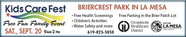 Grossmont Healthcare District and the City of La Mesa will present Kids Care Fest from 9 a.m. to 2 p.m. on Saturday, Sept. 22 at Briercrest Park, 9001 Wakarusa St., La Mesa.