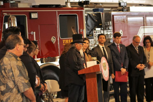 March 24, 2017 (Jamul) -- Fighting fires in the East County just got a little easier thanks to the Jamul Indian Village Tribe, which handed over the keys to two fire trucks to the San Diego Fire Authority at a ceremony that was held March 22 on the premises of the Hollywood Casino in Jamul.