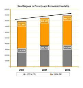 September 29, 2009 (San Diego)--Poverty in San Diego County shot up in 2008, rising at a much faster pace than in California or the nation. This plunge in quality of life for many San Diegans is documented in U.S. Census data released today.