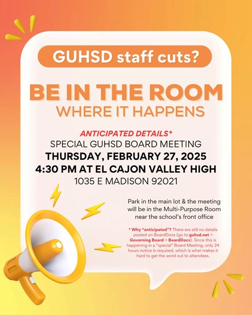 View video of recall announcement. Recall organizers have setup a website and an Instagram page. Since the GUHSD has district elections, signatures must be obtained in each of the four districts to qualify a recall election for the ballot.