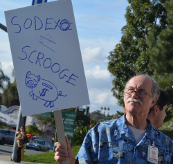 December 13, 2012 (La Mesa) Housekeeping and dietary workers were once again outside Grossmont Hospital walking the sidewalk yesterday. The employees work for Sodexo, a subcontractor whose workers are paid less than Sharp Hospital employees but are charged more for their healthcare, say union representatives who seek fairer wage and benefit terms for Sodexo workers.