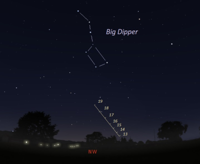 LOOK IN NORTHWESTERN SKY ONE HOUR AFTER SUNSET THROUGH JULY 22