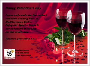 Mediterraneo Italiano Bistro & Bar, 1347 Tavern Road, Alpine 91901 (619)445-9902 http://mediterraneobistro.com/