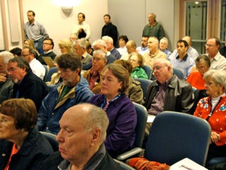 June 18, 2014 (La Mesa)- An overflow crowd filled Council Chambers and spilled outside at last night’s La Mesa Planning Commission meeting on the controversial Park Station project, a multi-use development proposed at Baltimore and Nebo Drive. Kitzman, the developer, has scaled down original plans from 18 stories to 11, still well over double the height limit for the area. The