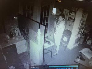A security camera revealed an image of the intruder eating and tampering with the alarm system The Sheriff’s department sent Deputy Darryl Patmon out to the scene to investigate.