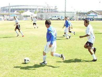 September 10, 2010 (San Diego) - If you think that you are too old to be active, you won't find much sympathy from this crowd. Over 100 players ages 50 and older from throughout the County played a series of soccer matches last weekend (9/4-5) at the Chargers' former practice field in the Qualcomm Stadium parking lot. The featured game was a championship in the age 60+ group between the U.S. and South Korean teams. Teams participated in 8-on-8 as well as fully-configured 11-on-11 matches.