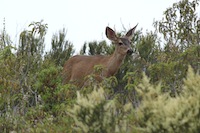 December 29, 2012 (Cuyamaca) -- While driving through Rancho Cuyamaca State Park last week, ECM editor Miriam Raftery spotted several groups of deer grazing in the sun-dappled woods, including this doe, which paused to pose for a picture-perfect moment.
