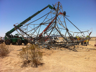 About half an hour later, while driving back on the same road, he and his wife came upon the scene of a crash where SDG&E’s sky crane helicopter had inexplicably dropped a 15,000 pound tower. Pelley started shooting photos. “One of the guys said `Hey, we’d appreciate if you wouldn’t take pictures until we clean this mess up,” he recalled. When he refused to comply, Pelley said the employee held a hand up in front of his camera lens. “So I started shooting video,” he told ECM.