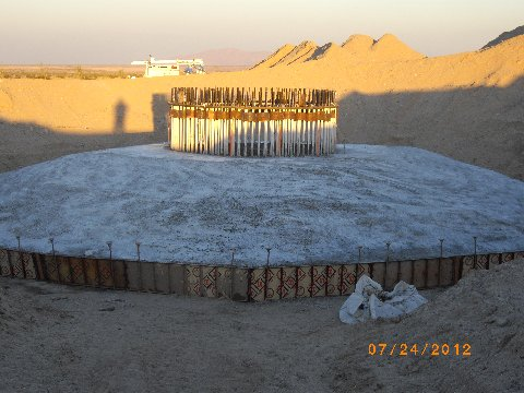 July 25, 2012 (Ocotillo) – No, this isn’t the mother ship that’s landed in Ocotillo. It’s another alien power – the first wind turbine foundation poured at Pattern Energy’s Ocotillo Express project.  Photographer Jim Pelley measured a single turbine foundation hole measures 286 feet.