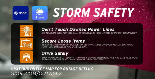 Community Resource Centers are open in many communities. For a list of community resource centers, see https://www.sdge.com/psps-dashboard.