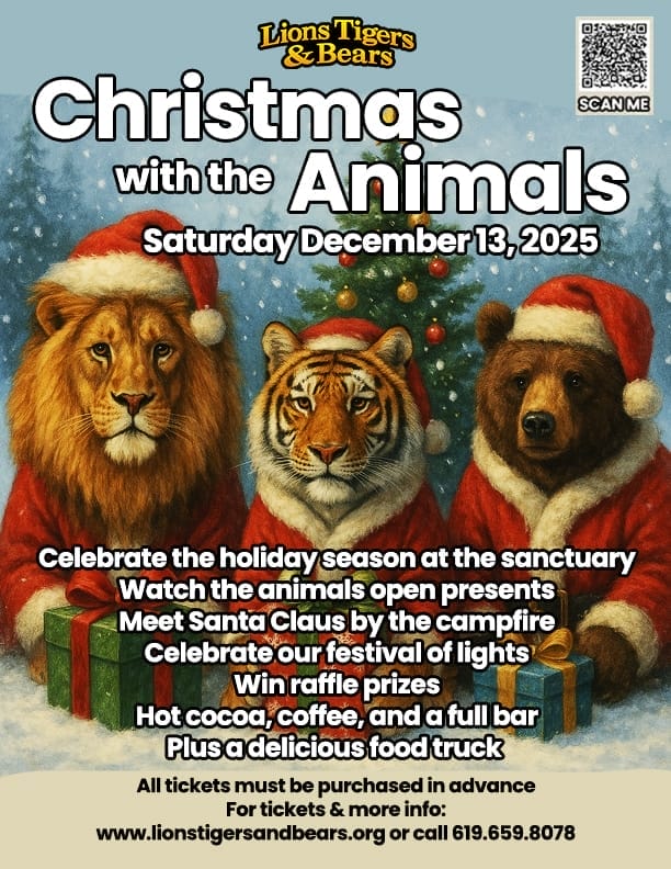 Hear our interview with Bobbi Brink, founder of Lions Tigers and Bears, originally aired on KNSJ: https://www.eastcountymagazine.org/sites/eastcountymagazine.org/files/au...