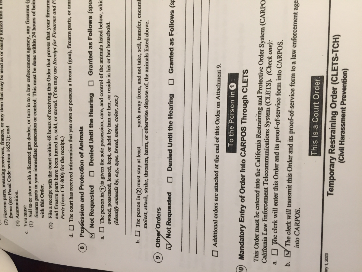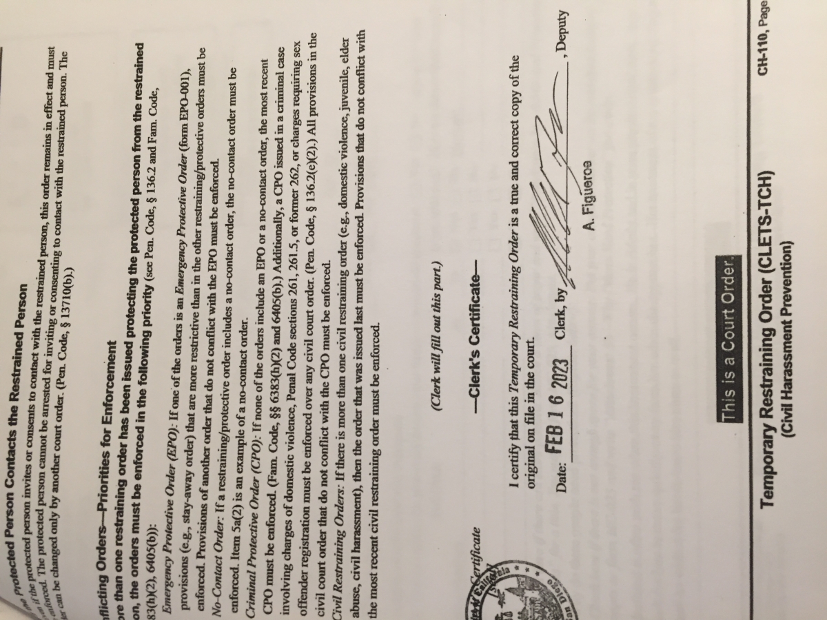 View restraining order: page 1 (redacted), 2, 3, 4, 5