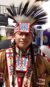 Some dances tell stories, such as traditional men’s competitors with eagle feather bustles, simulating hunts or battles. Fancy dancers, are among the most eye-catching, with swift steps and brilliantly-hued clothing. Women compete in the shawl-dancing competition, a newer category, and jingle dancing, which has its origins in healing ceremonies.