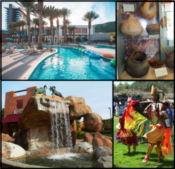 Many of our local tribes welcome visitors to enjoy facilities on tribal lands, which are each sovereign nations. Attractions include casinos, hotels, golf courses, spas, concerts and other live entertainment, restaurants, an outlet shopping mall, restaurants, buffets and bars, a speedway, a paintball range, a museum, Native American pow-wows, a brewery, a vineyard, a dispensary, hiking trails, campgrounds, a water park, bike park, and a zip line.