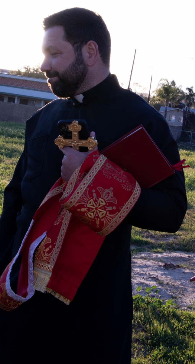 March 1, 2022 (San Diego’s East County) -- Local Ukrainian-Americans gathered in demonstrations these past few days in solidarity with their nation, which is under attack from Russian forces. Thursday night, a prayer vigil was held in Santee on a vacant lot, where there are plans to build a Ukrainian Catholic Church. Father Yurii Sas of St. John the Baptizer Catholic Church in San Diego led his congregation in prayer and song, asking for God to protect his people in the Ukraine: