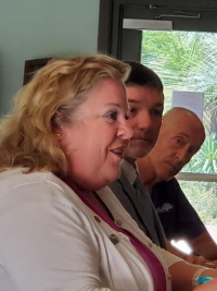 Robak made clear that the success in improving the garden’s financial outlook and morale has been a team effort. “We’ve done a pretty darn good job the last three months,” he said, doling out praise for the JPA members, the volunteers, Magnuson, Townsley, Brian Olney, and his own efforts including community outreach and more.Photo, right: JPA member Kathleen Hedberg praises efforts to revive the Garden, as Brian Olney and Chair Mark Robak look on.
