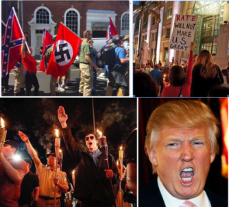 Update August 17, 2017 -- President Trump has backed off his words from Monday in an angry speech to reporters yesteraday, where he claimed counterprotesters were "very violent" and that there were "good people" on both sides. His appeasement and excusing of those in a march with Nazi flags prominently displayed has appalled many, prompting resignation of numerous CEOs off his business advisory panel which Trump dissolved as more and more quit in protest over his racial views. Watch video on CNN.