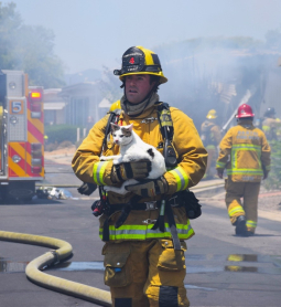 July 17, 2024 (Santee) – Santee firefighters rescued an unconscious woman from a mobile home engulfed in flames this afternoon, also saving numerous cats, though one cat perished.