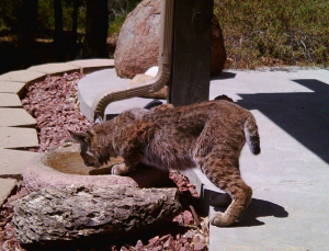 If you want to be a good wildlife Samaritan, start by providing a back yard full of shallow watering holes: bird baths, clay dishes, flower pot plates, whatever you can provide with fresh, clean water will do. You may attract perching birds, hawks, quail, bobcats, foxes, bunnies, frogs, dragonflies, and more.